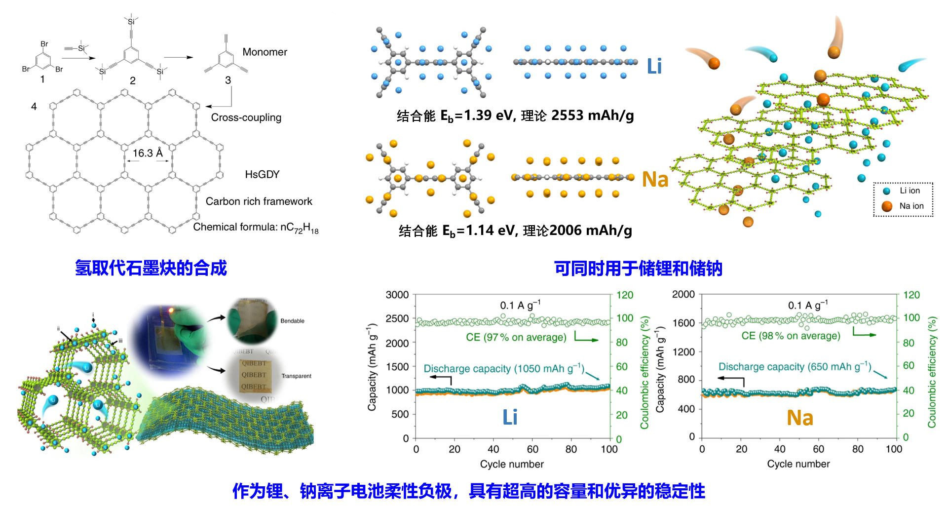 Hydrogen substituted graphdiyneas carbon-rich flexible electrode for lithium and sodium ion batteries. Nat. Commun. 2017, 8, 1172.