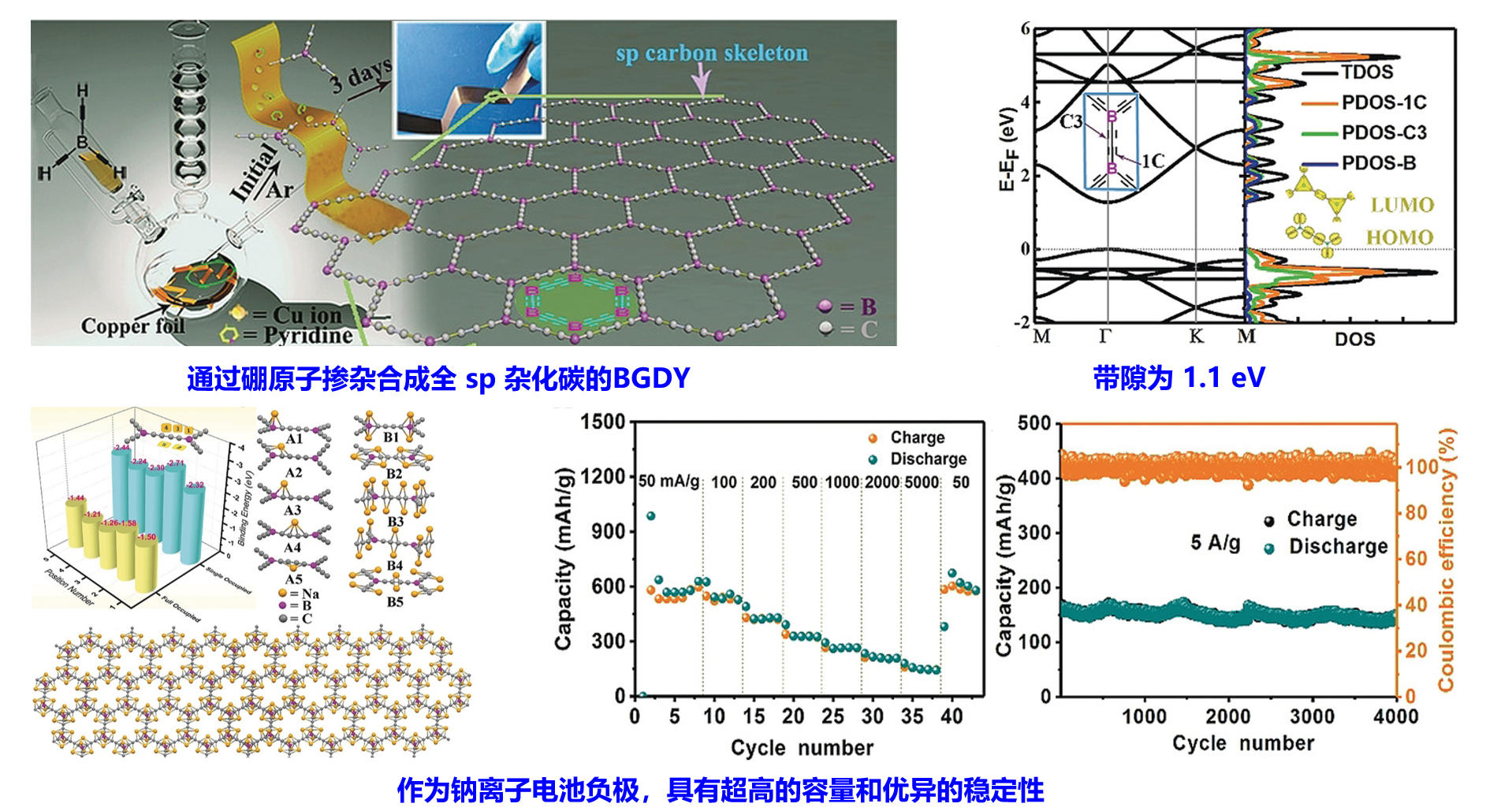 Synthesis and Electronic Structure of Boron‐Graphdiynewith an sp‐Hybridized Carbon Skeleton and Its Application in Sodium Storage. Angew. Chem. Int. Ed. 2018, 57, 3968-3973